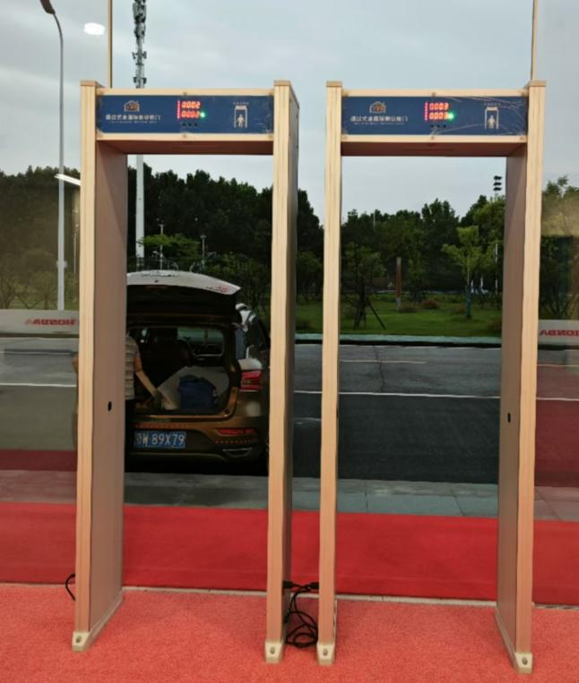 面板顯示功能:分別統計通過人數及報警次數,安檢門前排雙立柱帶有LED燈區位顯示定位違禁物品。